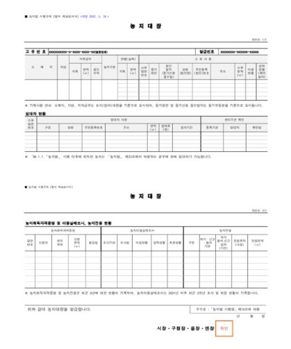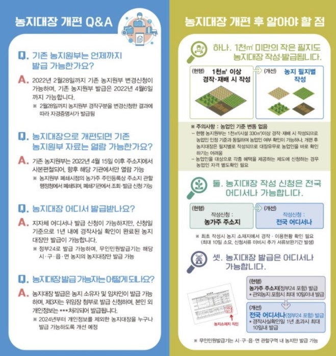 | 구분 | 농지원부 | 농지대장 (2022.8.18.부터) |
